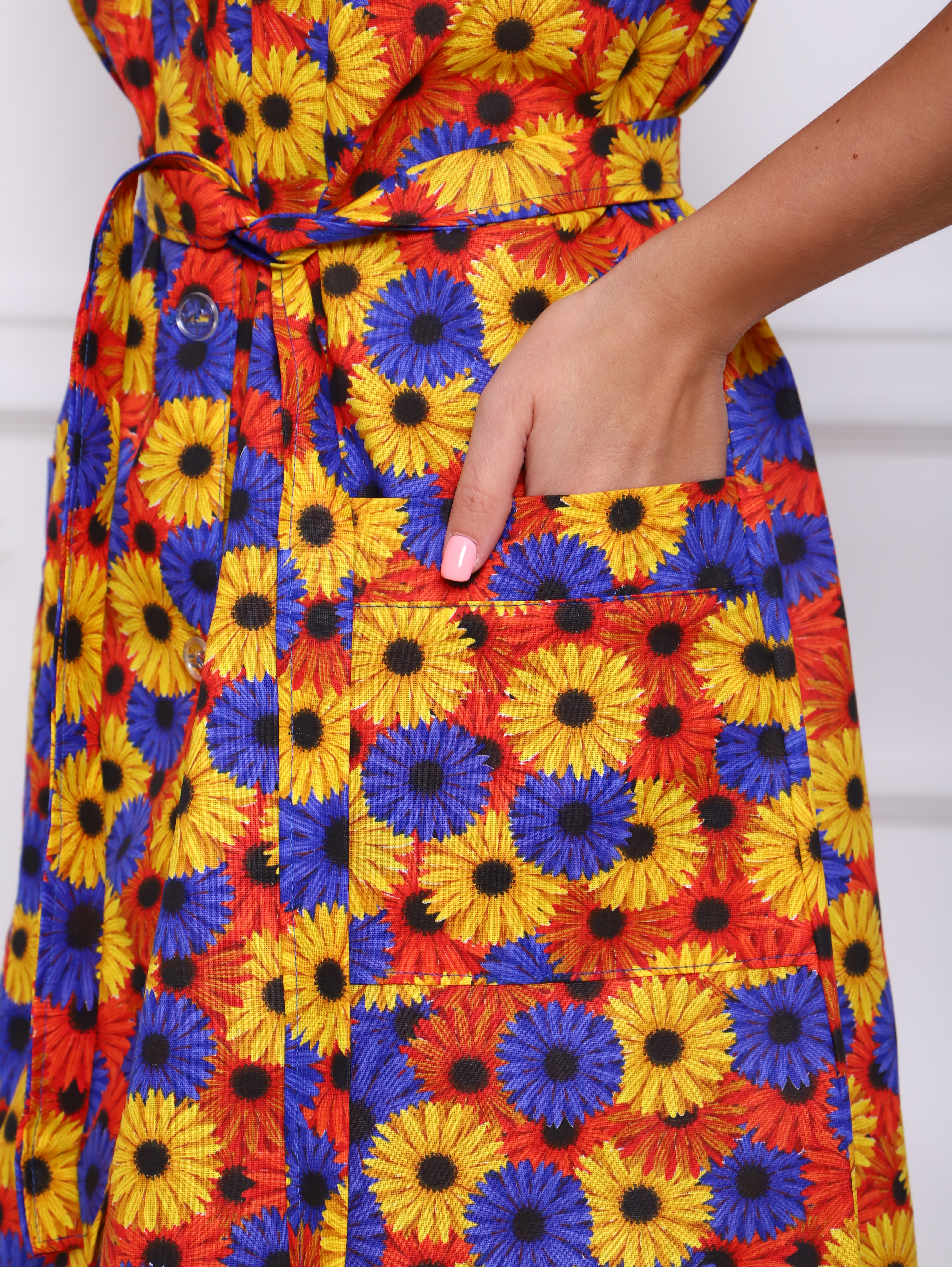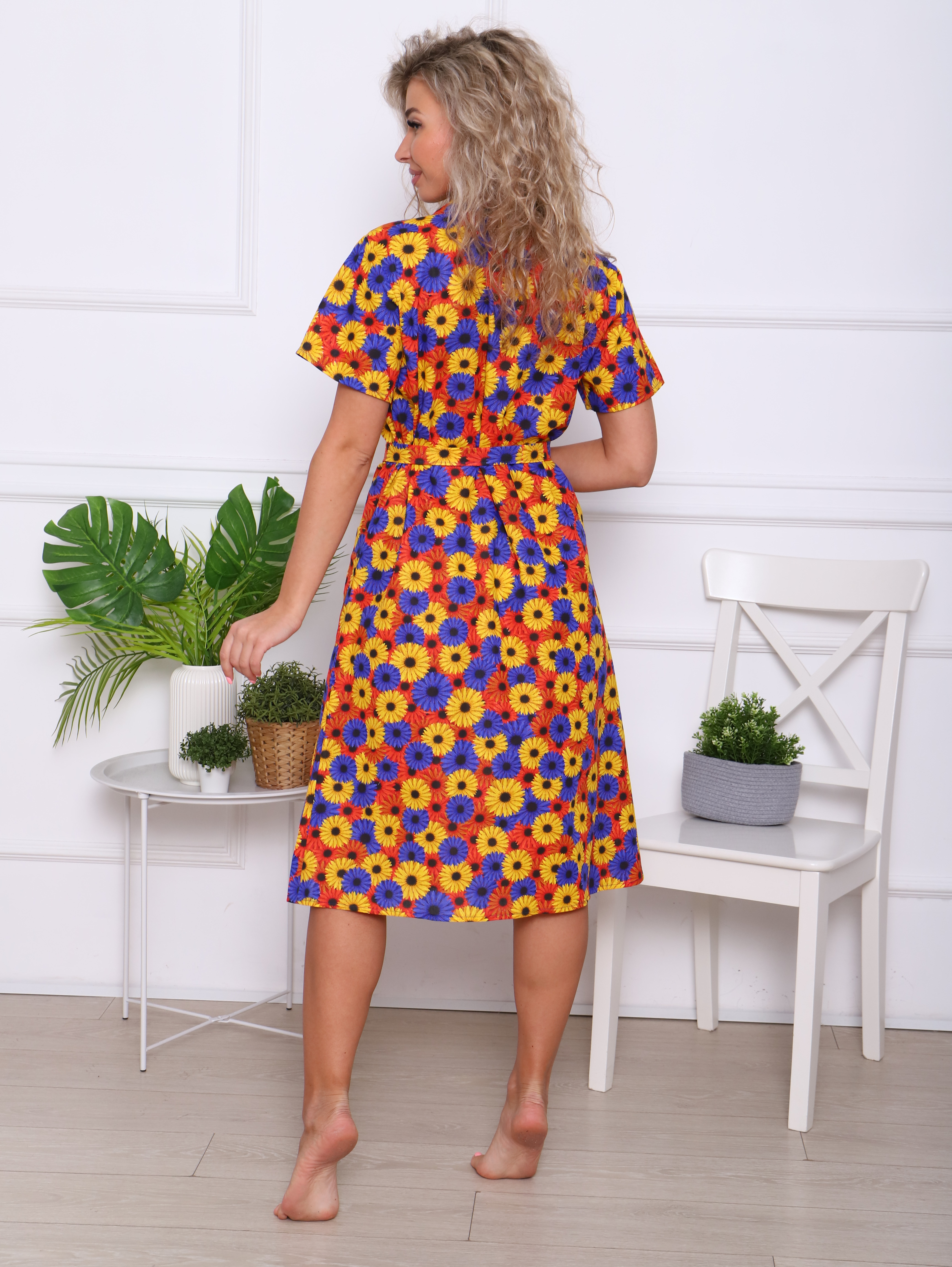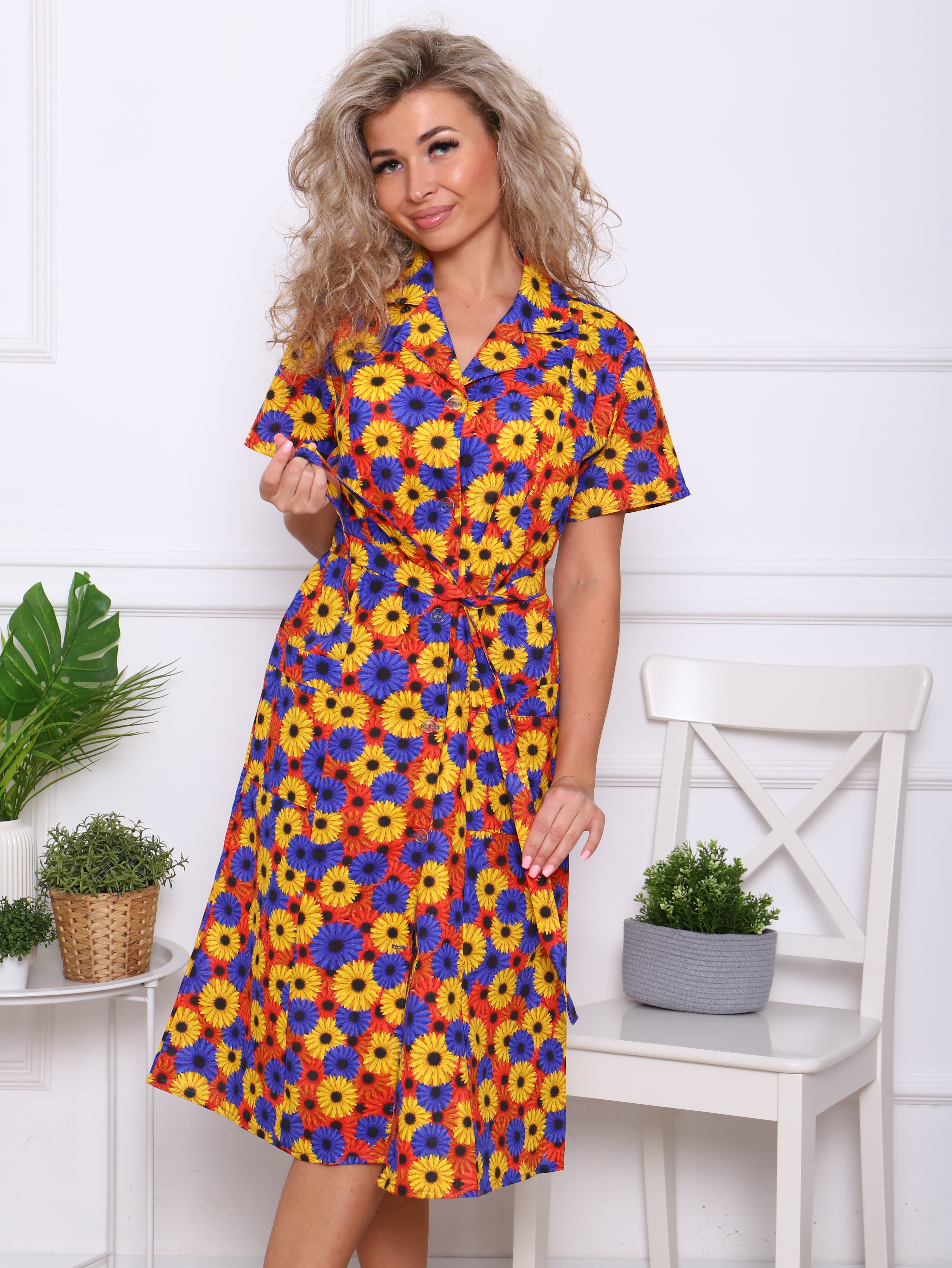 Халат домашний летний бязевый на пуговицах,  с накладными карманами и втачным коротким рукавом, выполнен из натурального хлопчатобумажного материала 100% хлопок.