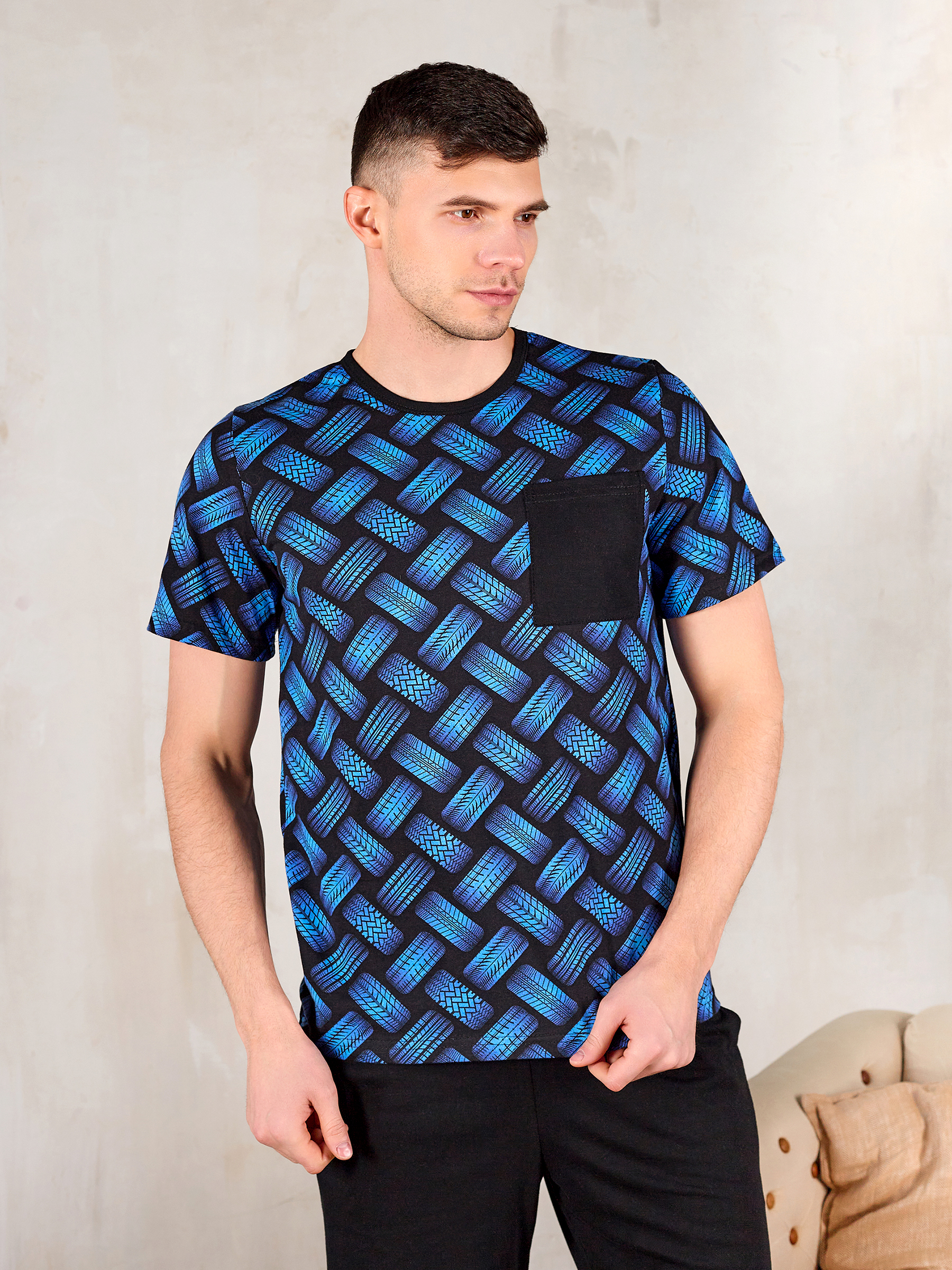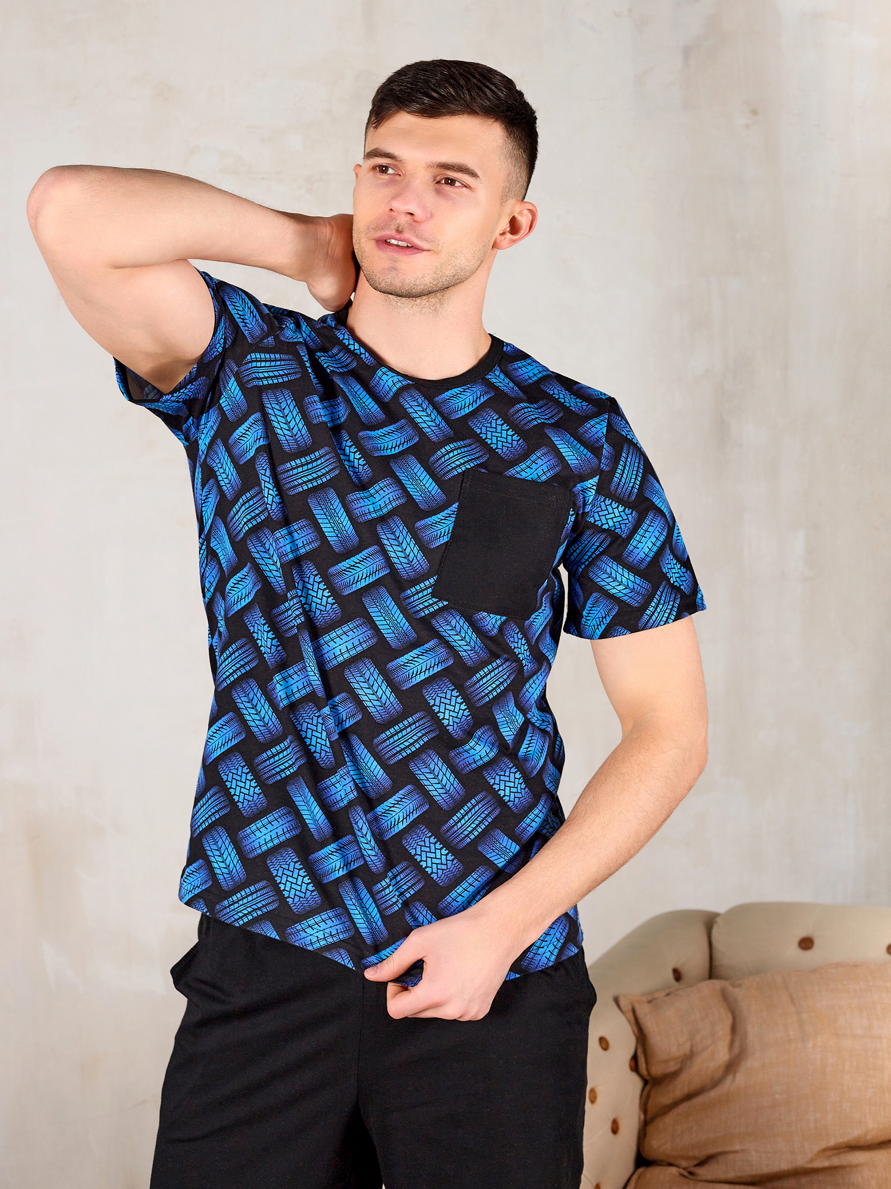 Домашний костюм мужской трикотажный Синие шины